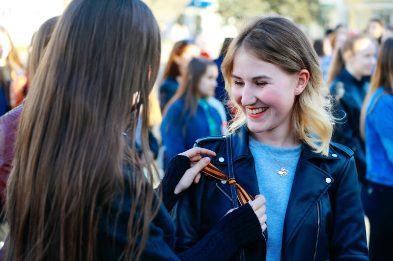 Молодежь города выстроилась во фразу "Мы помним" на Площади Республики. Каждая буква состояла из 50-70 человек. Во время построения ребята пели фронтовые песни и хором прокричали: "Спасибо деду за Победу!".