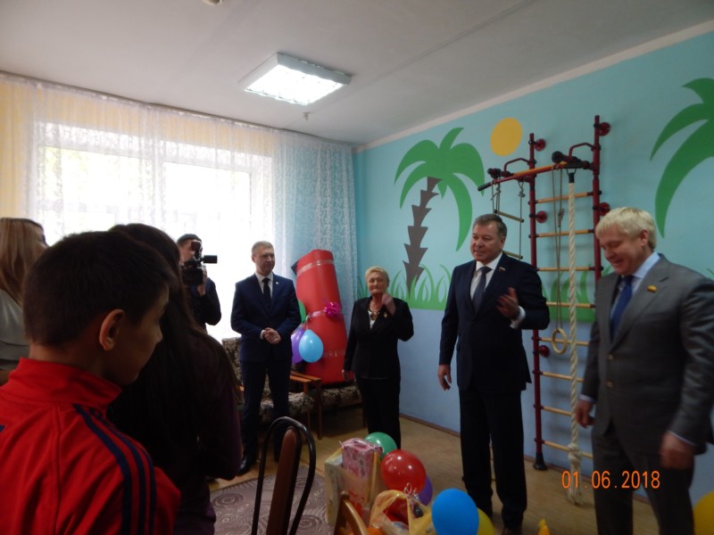 Не забыли поздравить в этот праздничный день и воспитанников из Новочебоксарского социально-реабилитационного центра для несовершеннолетних. Здесь депутат Государственной Думы Российской Федерации Николай Малов, депутат Государственного Совета Чувашской Республики Сергей Михеев, глава администрации города Новочебоксарск Ольга Чепрасова, заместитель министра труда и социальной защиты Чувашской Республики Виктор Ковалев и председатель Новочебоксарской городской организации ЧРОООО "Всероссийское общество инвалидов" Анна Кузьмина вручили ребятам подарки и сладости, а также поздравили с Международным днем защиты детей.