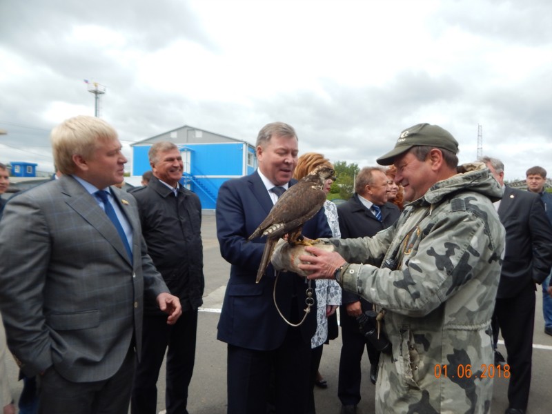 Заместитель директора организации Александр Соловьев продемонстрировал гостям прирученных соколов, которые с успехом используются в процессе биорепелентации на территории полигона для отпугивания стай врановых птиц, оказывающих отрицательное влияние на экологию близлежащих территорий. Напомним, город Новочебоксарск стал первым в использовании биорепелентации на территории Российской Федерации.