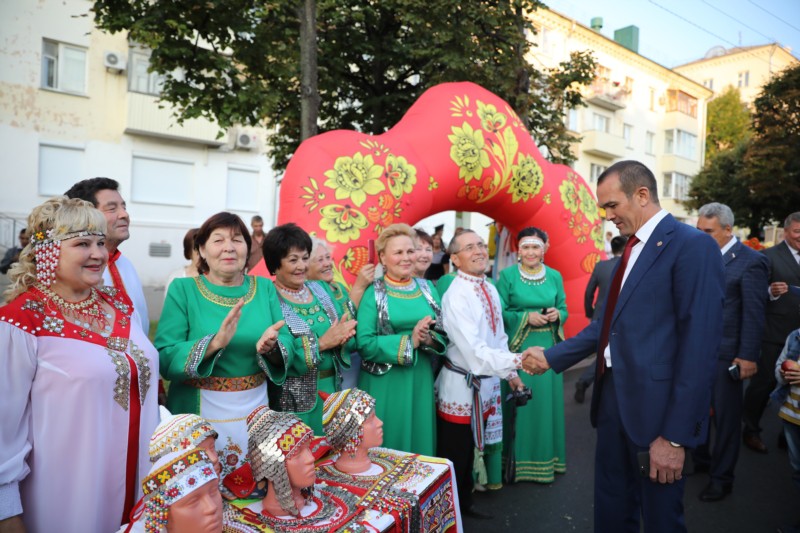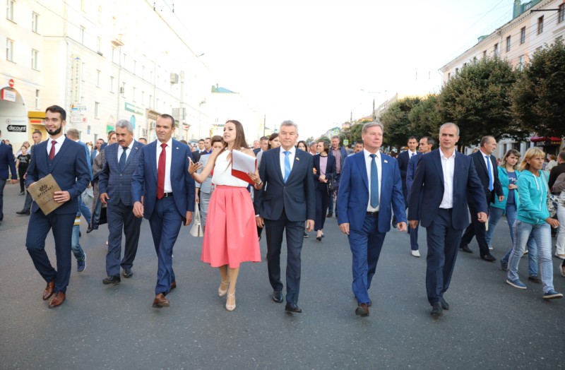Вместе с жителями по бульвару прошлись глава Чувашии Михаил Игнатьев, глава города Евгений Кадышев, глава администрации Алексей Ладыков.