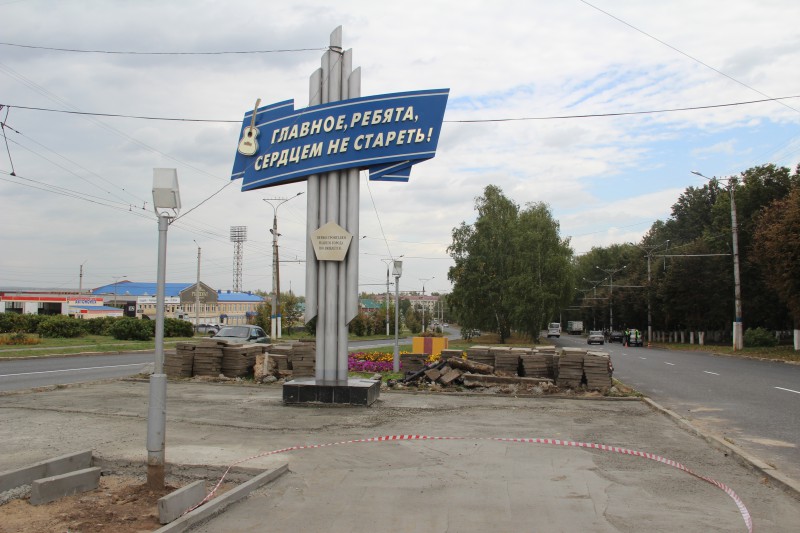 Сейчас здесь проводится демонтаж старых бордюров в районе МКД № 14а, установка новых бордюров на бетон в районе ТЦ "Заря", подготовка площадки под укладку брусчатки возле стелы "Главное, ребята, сердцем не стареть!" (укладка и пролив песка, установка бордюров для клумбы, установка опор ограждения).