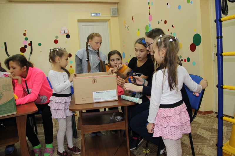 Аппаратчик службы эксплуатации инфраструктуры Ксения Петрова вместе с девочками сотворили практичные коробки для игрушек, которые впредь можно использовать в быту. Для этого они обклеили обычные картонные коробки цветными нитями, затем выкроили, сшили и надели на них цветастые чехлы. «Такая красота получилась! Никогда бы не подумала, что из обычных материалов можно создать такую полезную вещь. Мне как раз дома некуда игрушки братика складывать, возьму этот мастер-класс на заметку!» - говорит 12-летняя Дарья.