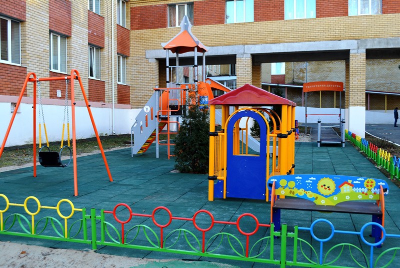 Для юных воспитанников центра оборудованы беседки, установлены качели, песочница, качалки, игровые сооружения, поставлены скамейки для родителей. Все составляющие городка подобраны с учетом особенностей и потребностей ребят и соответствуют необходимым стандартам и параметрам безопасности. Покрытие территории комплекса выполнено из специальной резиновой плитки.