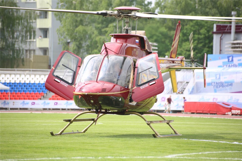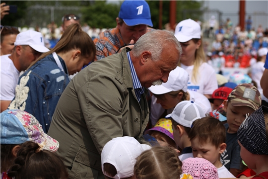 Утром в Чебоксарах на стадионе "Олимпийский" приземлился вертолет с Леонидом Якубовичем и Юлией Барановской, которые поздравили ребят с Международным днем защиты детей и угостили их мороженым.