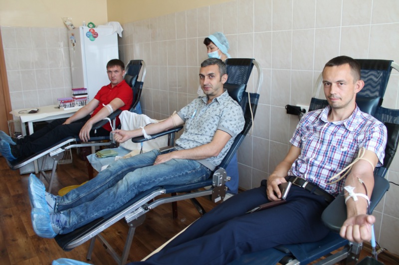 Перед донацией врачи определяли уровень гемоглобина и проводили медосмотр, так как сдача крови должна быть безопасной и для самого донора. Каждый сдал по 450 мл крови, в том числе были сотрудники с редкой четвертой группой и отрицательным резус-фактором.