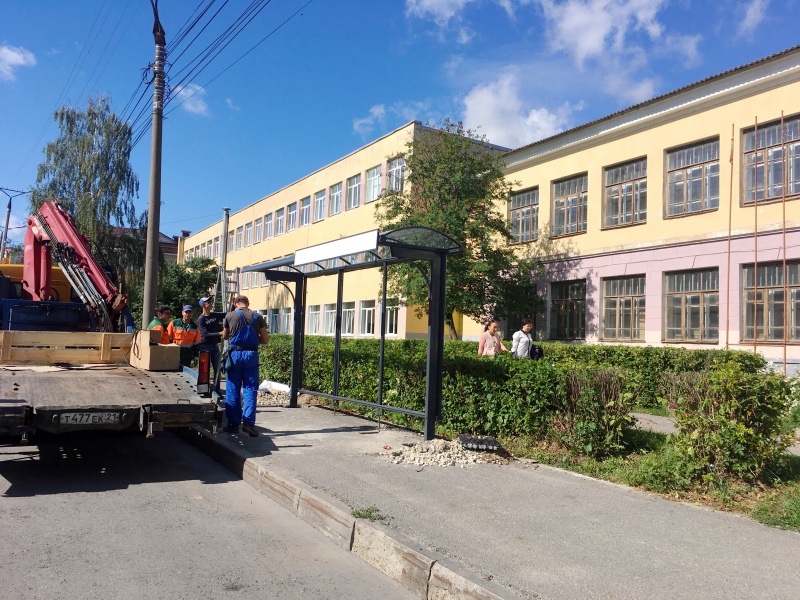 Параллельно с выполнением данных мероприятий подрядной организацией АО "Дорэкс" ведутся работы по монтажу новых остановочных павильонов на остановках общественного транспорта "Детский парк им. Николаева", "Проезд Школьный", "Гимназическая", "Поликлиника МВД", "Храм Рождества Христова", "Деловой Центр "Республика". Всего будет установлено 11 павильонов.