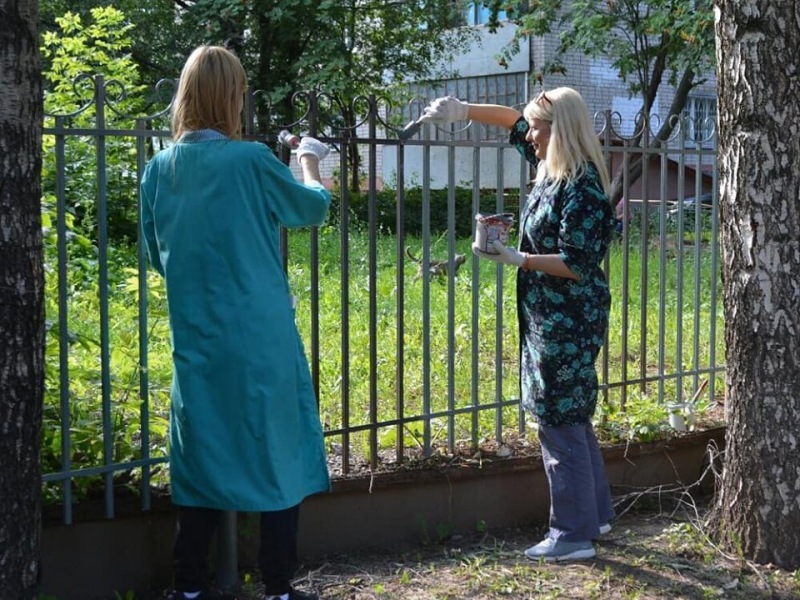В минувшую пятницу совместно с работниками учреждения энергетики обустроили газоны, убрали накопившийся мусор и покрасили забор. В итоге за несколько часов дружеской работы площадка центра была приведена в порядок.