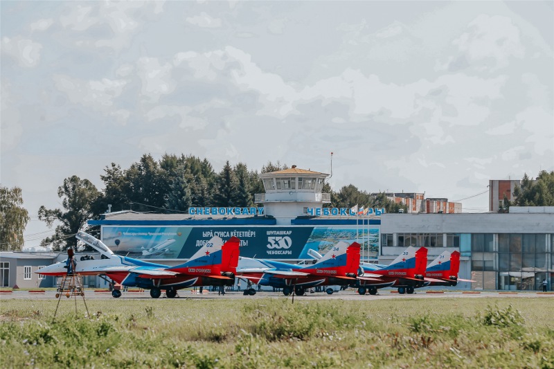 Авиагруппа высшего пилотажа Военно-воздушных сил России "Стрижи" 20 августа прибыла в Чебоксары, чтобы поздравить город с 550-летним юбилеем. Летчики-асы будут покорять небеса над Московской набережной 24 августа с новой программой. В международном аэропорту друзей города встретили депутат Госдумы Леонид Черкесов, глава администрации Алексей Ладыков.