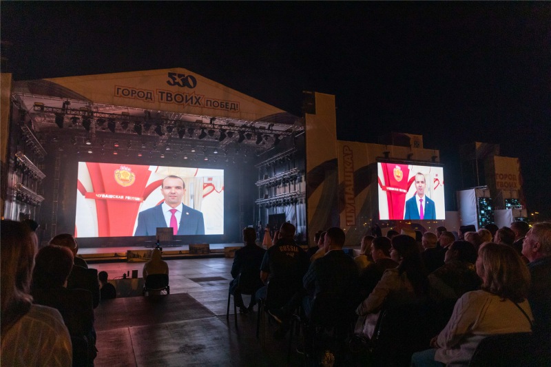 Ведущий зачитал поздравление, которое направил жителям Чувашии с юбилеем столицы республики Президент России Владимир Владимирович Путин.