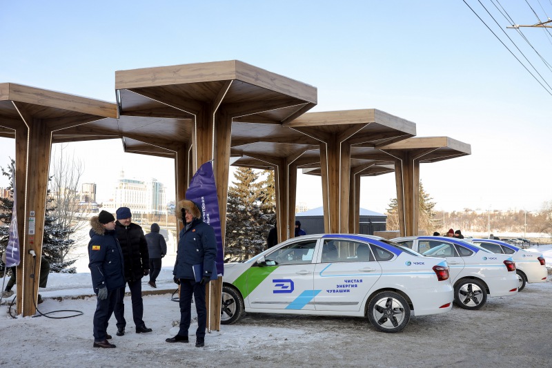 Электрозаправочный комплекс находится в центре города Чебоксары, напротив Чувашской государственной филармонии. Сегодня в торжественной обстановке его открыл Глава Чувашии Олег Николаев.